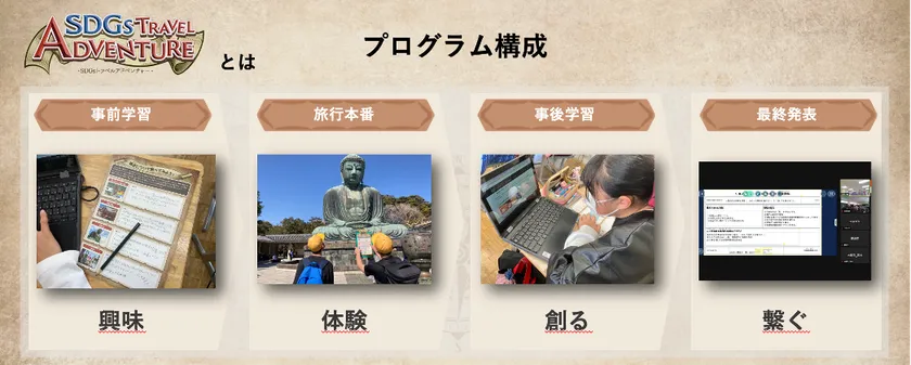 ただ学習や謎解きをするだけでなくプレゼンテーションまで一気通貫で実施するプログラムにより、子どもたちの旅先への興味・関心を引き出しながら、学びをアウトプットする機会を設けます。