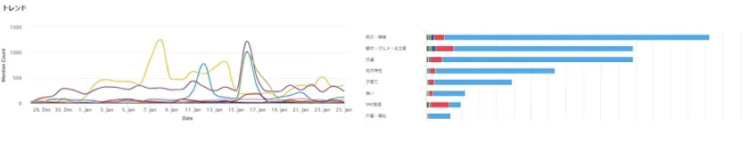 マルチ言語でデータ取得が可能なため、日本国内はもとより、海外の消費者の声をリアルタイムに収集し分析することができます。グローバルな市場のトレンドやニーズをリアルタイムに取得でき、直観的かつ容易に使用できる分析画面を備えているため、膨大なソーシャルの情報から、必要な情報を収集し、効率的なデータの利活用を促進します。