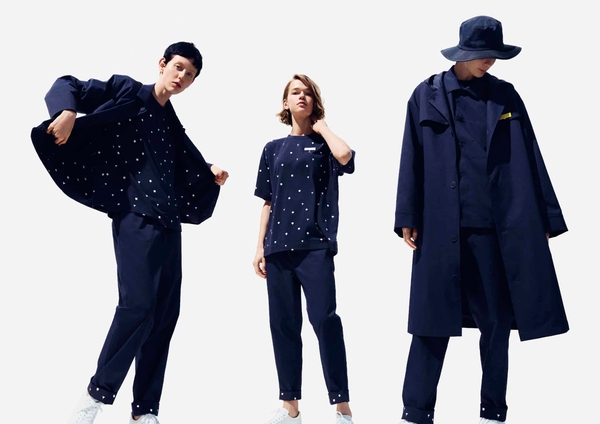誠実な印象を持つネイビーを主色とし、ジャケット、シャツ、パンツで構成されたジェンダーレスなユニフォームです。動きやすいゴムのパンツ、可動に適したストレッチ素材のジャケットなど、働くスタッフにとって優しい機能性が考慮されています。また、普遍的な模様であるドット柄と掛け合わせたピンドットのデザインは着る人の世代や性別を選ばず、帽子やバッグといった小物類でスタッフそれぞれの個性を演出することも可能です。さらに、施設の住所が記載された吹き出し型のマグネットバッジ(全3色)はOMO7大阪を象徴するアイコンで、ジャケットだけではなく小物類にも付け替えられます。