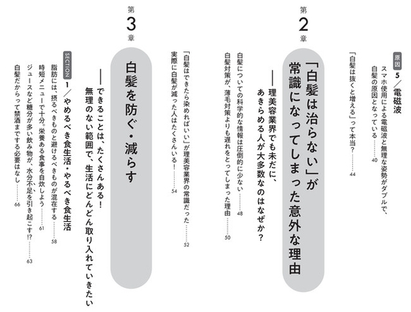 本書では、白髪が増えてしまういくつかの原因をズバリ指摘。