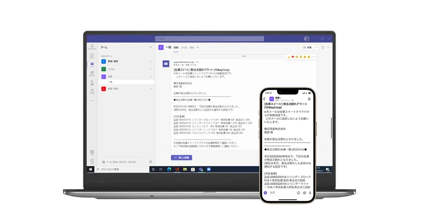 クラウド在庫管理システム、 発注点割れリストをメールやTeamsで通知が可能に 当日割り込み限定で、重複発注のリスクを軽減