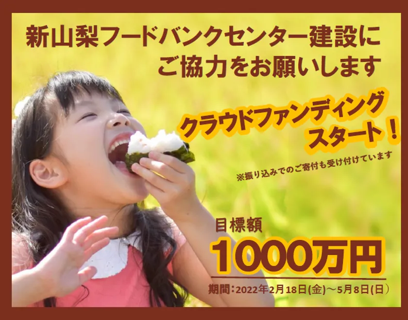 また、フードバンク山梨は、より多くのコロナ禍の子どもたちに、食料支援を実施するために「新山梨フードバンクセンター」の建設を目指してご寄付を募っております。