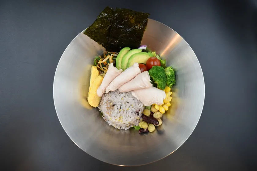 ダイエットやトレーニングを頑張っている方にお勧めな「マッスルビビンバ」1,430円(税込)カスタムビビンバに鶏胸肉+ブロッコリーが入った高タンパク・低糖質メニューです。