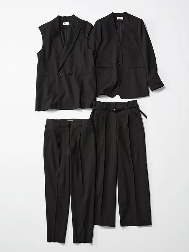 このコロナ禍で、オフィスへの出社と在宅勤務のいわゆる「ハイブリッドワーク」が広がる中、スーツのジャケットほど堅苦しくなく、スリーブレスで動きやすい襟付きのジレや、センタープレスのワイドパンツなど、きちんと見えつつ、適度にリラックス感のあるアイテムがトレンドになっています。そんな新しい働き方に合わせ、「オンとオフでストレスなく着まわせるおしゃれさ、自由さが欲しい」というニーズに応えるため、組み合わせのバリエーションが豊富で、きれい目にもカジュアルにも着こなせる新しいスーツコレクションが誕生しました。