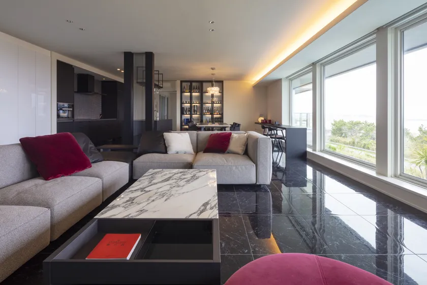 海の眺望を1日中楽しめる大空間「ファミリー スイート」リビング