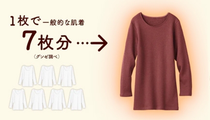 *「綿肌着7枚分の暖かさ」は、自社製品との保温性測定値比較に基づいています