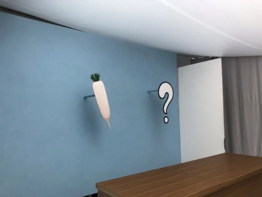 意味ありげな大根と「?」マークの絵の前に立つ大泉さん。<まる生Wおろしぽん酢>を食べ、大根ともう1つのおろしの食材を当てていきます。「舌には自信ありますよ」と、自信満々に、<まる生Wおろしぽん酢>で豚しゃぶサラダを食べる大泉さん。しかしわかったのは「ただただうまい」ことだけ。真剣に味わい、まろやかな甘みから「あ、アレだ」と正解にたどり着いたかに見えましたが…最後には「何?」と白旗を上げます。答えは、大根と…<たまねぎ>!大泉さん、「たまねぎね!」と再び豚しゃぶサラダをほおばり、「だから肉に合うんだね」と改めて実感するのでした。