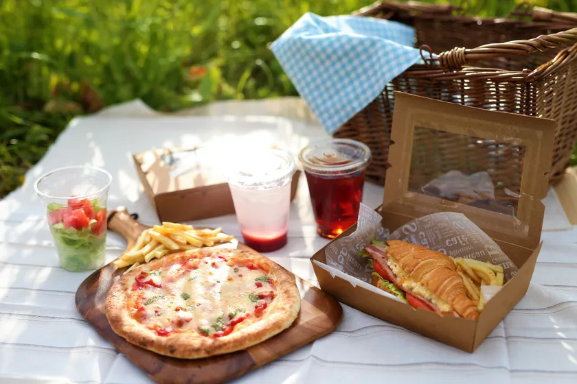 クロワッサンサンドやピザをガーデン内で楽しめます