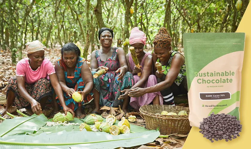 今般の協業により、日新化工株式会社が販売する製菓原料のラインナップに、Do well by doing good.(いいことをして世界と社会をよくしていこう)を体現したサステナブルチョコレートが追加されました。同サステナブルチョコレートには、カカオ生産国の自然環境の保護やカカオ農家の収入向上等を通じて、カカオ産業の持続可能な発展を目指す「サステナビリティ」に配慮したカカオ豆が使用されています。