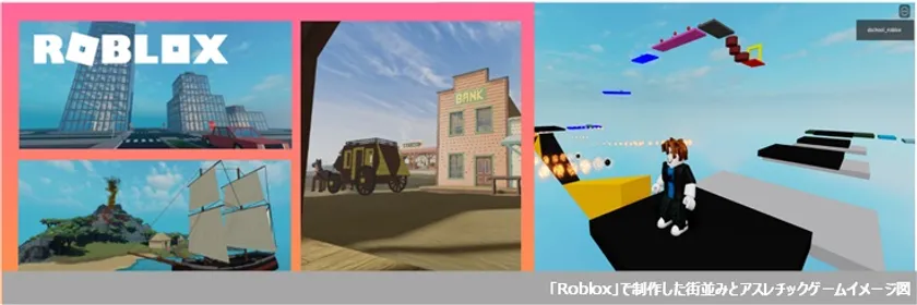 「Roblox」で制作した街並みとアスレチックゲームイメージ図