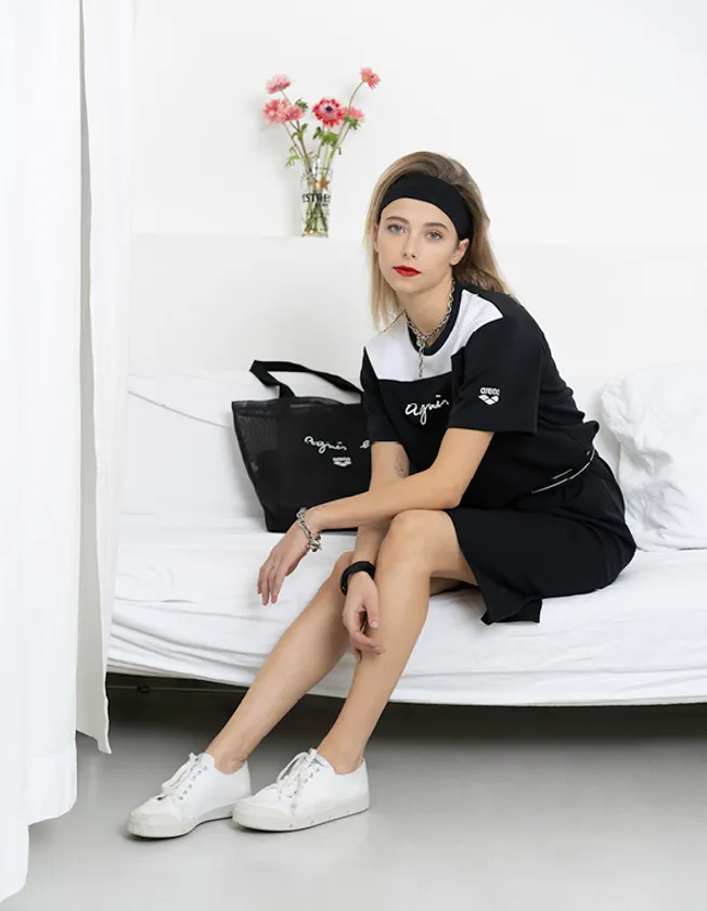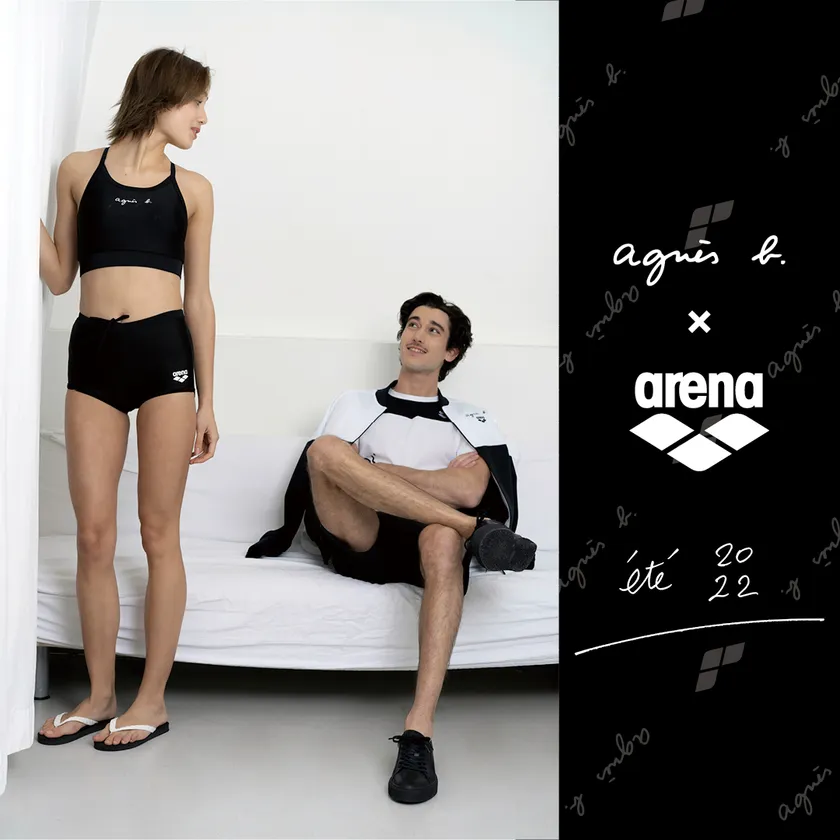 日常的にスイミングを楽しむデザイナーのアニエスベーは、同じフランスを発祥とし、革新的でスタイリッシュ、さらに機能性に優れた製品を世に送り出し続けるアリーナをコラボレーションパートナーに、スイムウエアやトレーニングウエアを展開しています。