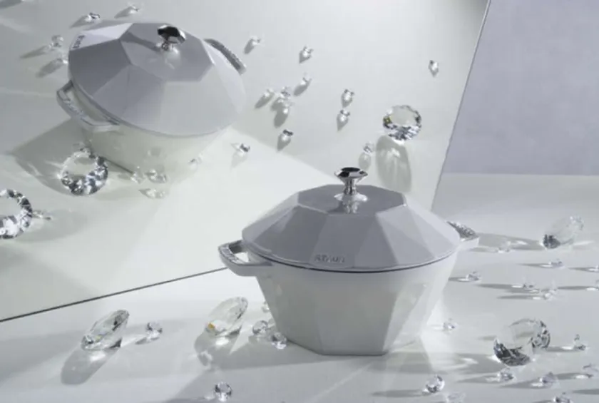 オープンを記念してストウブのスペシャルココット「ダイヤモンドココット」を数量限定で発売!また新色「シフォンローズ」もご覧いただけます。