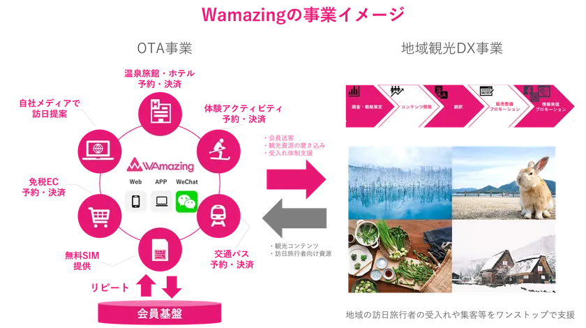 WAmazingは2016年7月創業の訪日外国人旅行者向け観光プラットフォームサービスを展開するスタートアップ企業。WEB、App、WeChatにてサービス提供しており、日本観光における5大消費(宿泊・観光体験・買い物・交通・飲食)の一元的な案内・手配・購入ができるサービスを構築中。日本国内の国際線定期便就航の22空港において、無料SIMカードを配布する端末を設置し、訪日外国人旅行者ユーザーを増加させて参りました。