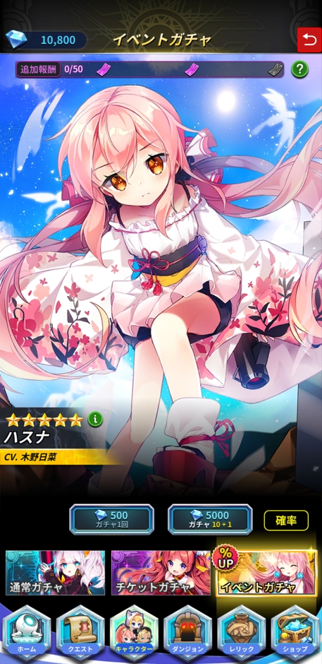 必要な宝石数は多くなりますが、獲得確率が大幅に上がっているスペシャルガチャです!
