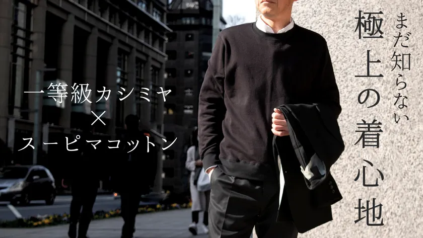 自社オリジナルで開発した生地は、表がスーピマオーガニックコットン・肌に直接触れる裏が一等級のピュアカシミヤになっています。