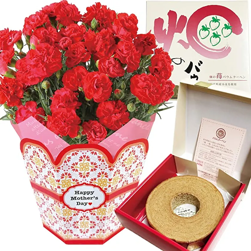 毎年一番人気の鉢花「カーネーション」と、いちご農園 いちごの里が手掛けるテレビにも取り上げられた注目の「いちごスイーツ」が通販限定で、販売を開始!母の日の代名詞ともいえるカーネーションに、いちごの美味しさが詰まったいちごスイーツの2つをセットにしてお届けいたします。