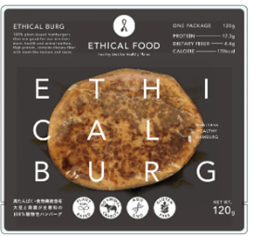 エシカルバーグは、蒟蒻や大豆、えんどう豆などを主原料とし、高たんぱく・食物繊維含有、かつ糖質やカロリーも控えめな、100%植物性ハンバーグです。見た目はもとより、味わいや食感にまで徹底的にこだわり、今までにない美味しさを追求しています。
