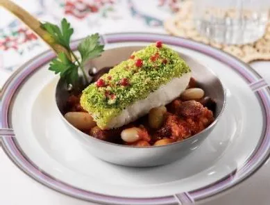 白身魚の香草パン粉焼き 大豆ミートのチリコンカン添え