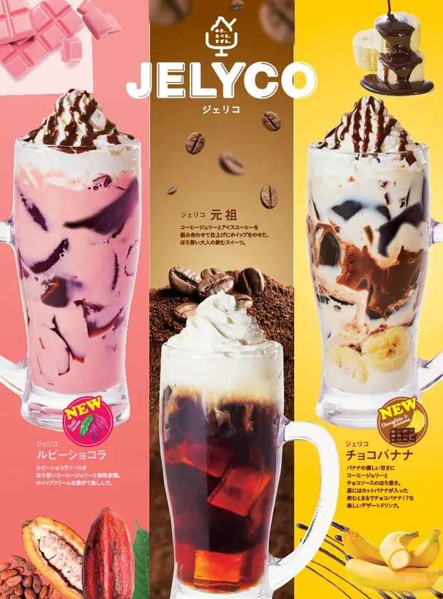 【コメダ珈琲店】\今年も2つのフレーバーが新登場/ ルビーチョコレートソースのフルーティな甘さを堪能する 「ジェリコ ルビーショコラ」 贅沢にバナナを使用したジェリコ「ジェリコ チョコバナナ」 4月28日(木)より季節限定で全国販売開始!