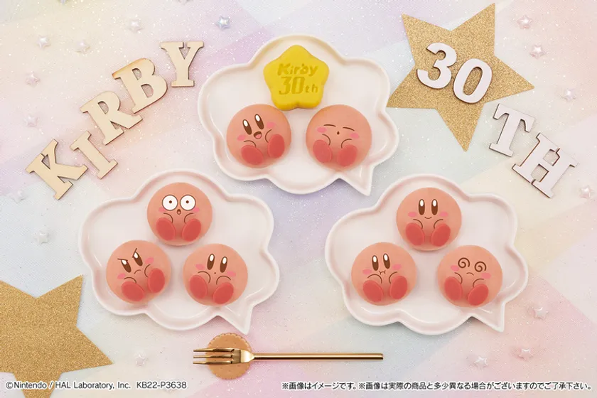 ワープスターはチョコレート味の餡が入った練り切りでできており、表面には30周年を記念したロゴを施しました。もち生地のカービィをちょこんと乗せることで作中のイメージを再現することができます。食べる前に思わず写真に撮りたくなる、SNS投稿にもおすすめの商品です。