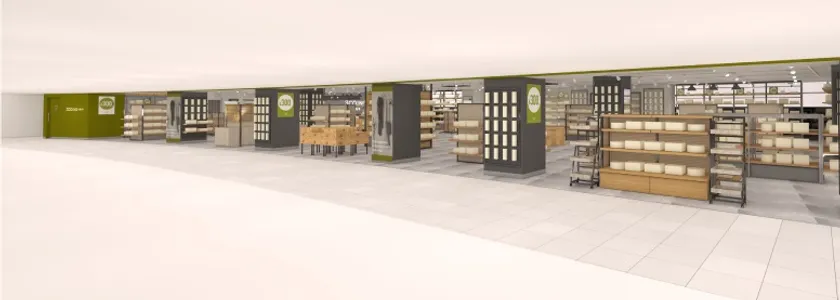 同店では食品専用什器を導入して展開します。
