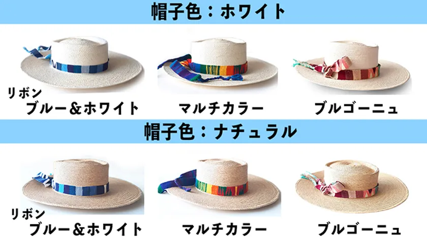 帽子の織り、リボンの縫製はすべて職人がハンドメイドで行っています。ですので同じ柄の製品でも全く同じものは二つとありません。