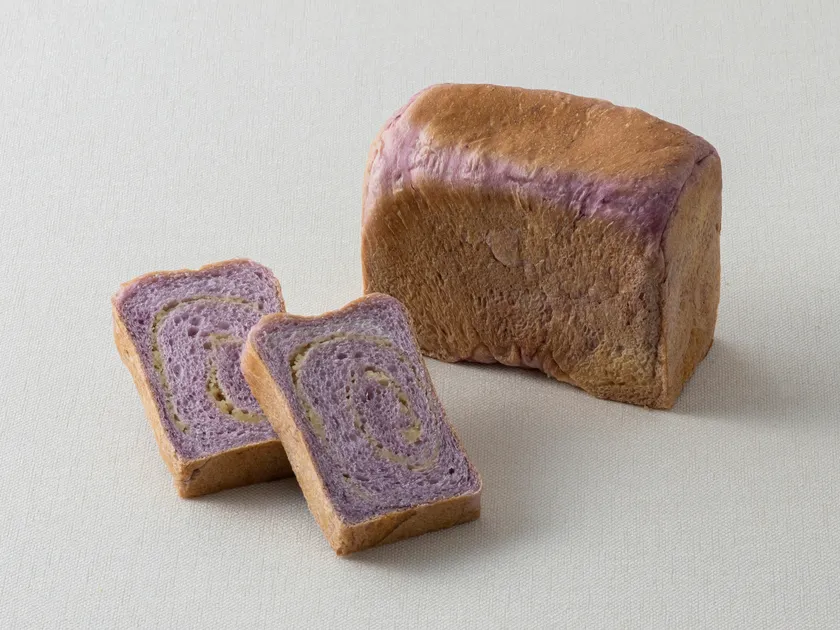 食パンの生地に紫芋のペーストを練りこんだ紫芋のミニ食パンです。さらに、食パンの中にも紫芋を加えていますので、紫芋のホクホクの食感も楽しむことができます。もちもち食感の食パンと紫芋の甘さのハーモニーをお楽しみください。ミニサイズに仕上げた食パンは、ちょっとしたおやつやお手土産にぴったりの商品です。