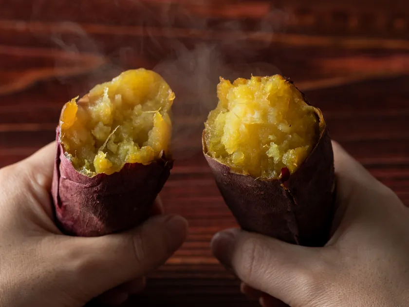 専門店の焼き芋は一般的なものと、ひと味もふた味も違います。産地から直接仕入れたさつまいもを、独自の二段階焼成で、最大限甘みを引き出しました。蜜がとろっと溢れ、ねっとり濃厚な食感に仕上がった焼き芋は、まるでスイーツのような感覚です。その場でアツアツの状態を頬張っていただくのはもちろんのこと、暑い時期には冷蔵庫で冷やし、スプーンで掬ってスイートポテトのようにお召し上がりいただくのもおすすめです。