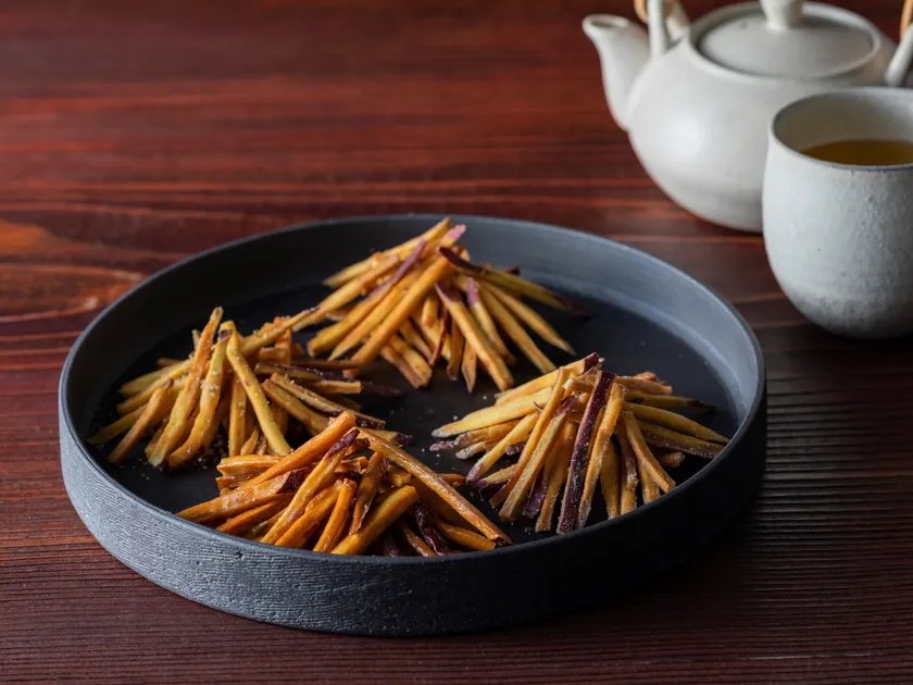 芋屋十三のケンピはポリポリとした食感と豊富なフレーバーが特徴です。試行錯誤を重ねた末たどり着いた、絶妙な細さにカットしたさつまいもをカラッと油で揚げることで、軽やかな食感が楽しいケンピに仕上がりました。お家での3時のおやつとしておすすめの、蜜掛けタイプやハニーバターといった甘いタイプだけでなく、晩酌のお供として、おつまみ感覚でお召し上がりいただける、のり塩や梅かつおといった、塩気の効いたフレーバーもご用意しております。