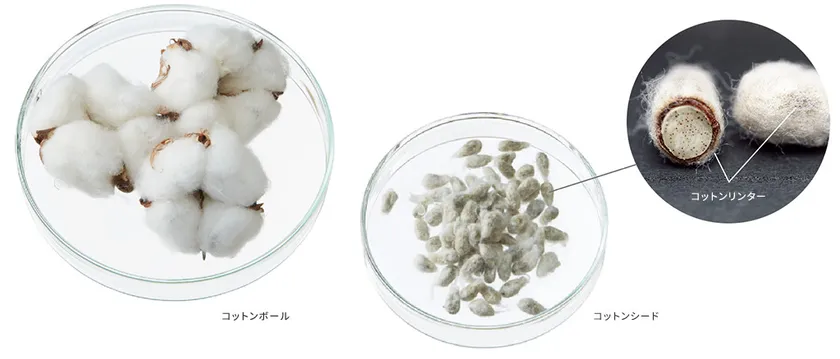 <原料となる、コットンの種のうぶ毛 “コットンリンタ―”>
