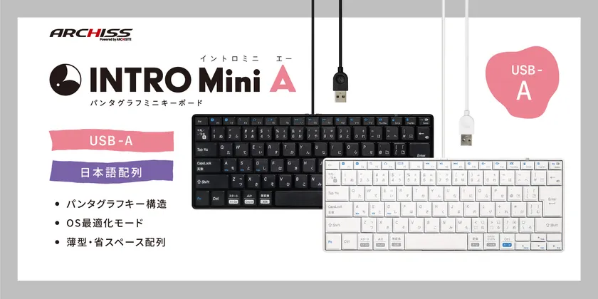 複数デバイス・OS環境での利用を想定した スタンダードな有線ミニキーボード ARCHISS “INTRO Mini A”を4月21日より販売開始!