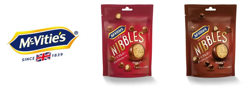 「マクビティ」は英国王室御用達のビスケットブランドで、その中でも「マクビティ ニブルズシリーズ」はひとくちサイズの全粒粉ビスケットをチョコレートで包み込んだ、ついつい手が止まらなくなってしまうチョコレート菓子です。