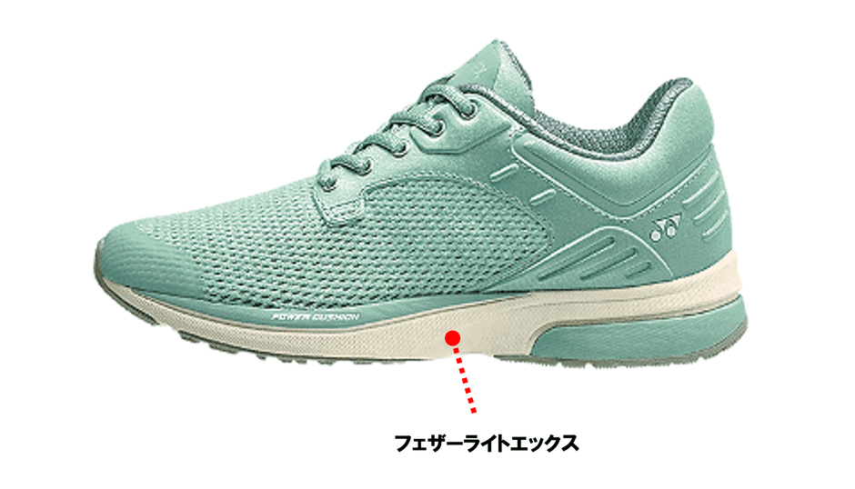 本商品は、ミッドソールの踏みつけ部とかかと部に、12mの高さから落とした生卵が、割れずに6m以上跳ね返る※1弊社独自の衝撃吸収反発素材「パワークッション®プラス」を搭載しており、快適なウォーキングをサポートします。ミッドソール全体にはヨネックス史上最軽量※2素材 「フェザーライト エックス」を弊社ウォーキングシューズに初めて搭載し、軽やかな歩行を支えます。