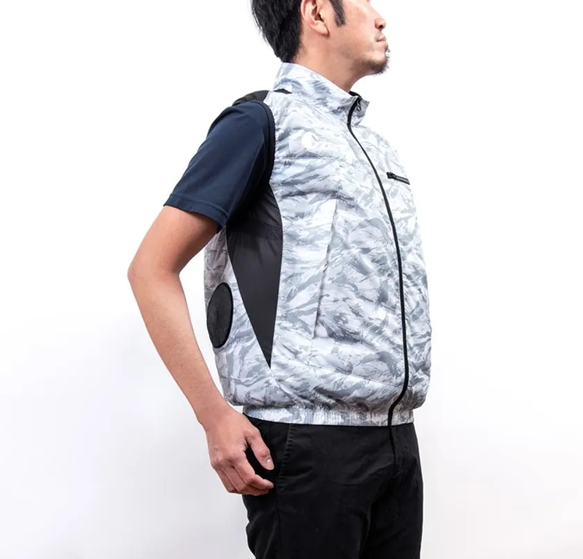 大型ファンと強力バッテリーでベストの中に風をとりこみ、暑い夏の屋外作業を涼しく快適に。両脇がメッシュ素材となっており、脇下から風が吹き抜けることで体を冷却します。保冷剤を収納することも可能な、通気エアダクトポケット付きです。