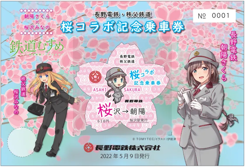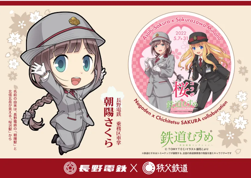 秩父鉄道株式会社(本社:埼玉県熊谷市、代表取締役社長:大谷 隆男)では、長野電鉄株式会社(本社:長野県長野市、代表取締役社長:笠原 甲一)と、各社の鉄道むすめキャラクターをコラボした「SL朝陽さくら×桜沢みなの 桜コラボエクスプレス」を2022年5月8日(日)に運行、記念乗車券とグッズを2022年5月14日(土)から販売いたします。