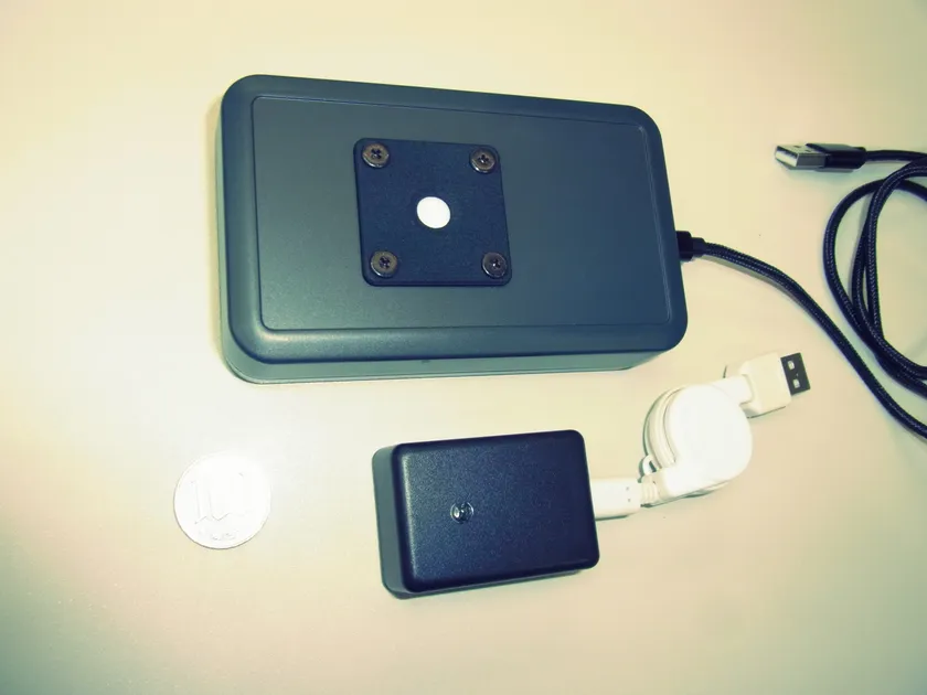 上段は測定器 下段は赤外線送信機 PCは付属しませんが、PCにインストールするソフトウェアは同梱します。