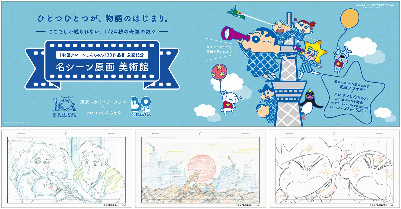 クレヨンしんちゃん×東京スカイツリータウン(R) 『映画クレヨンしんちゃん30作品記念企画』のお知らせ。 感動シーンの数々…! 30作品公開記念イベント開催! 「映画クレヨンしんちゃん」名シーン原画美術館 4/27(水)~5/31(火)東京ソラマチ(R)