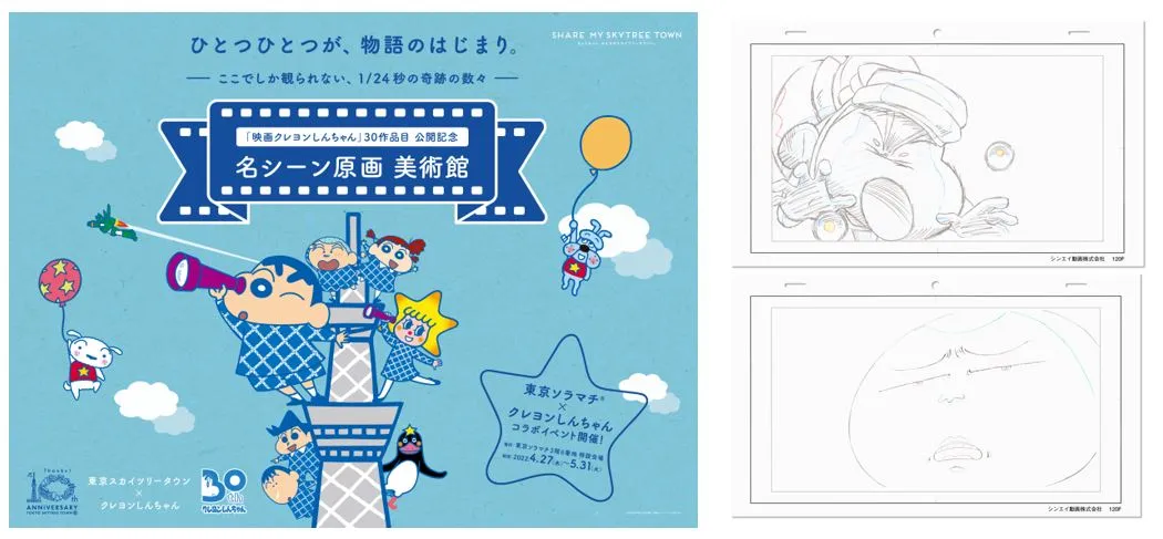 映画クレヨンしんちゃん製作委員会は、『映画クレヨンしんちゃん30周年記念企画』×『東京スカイツリータウン開業10周年企画』として、「映画クレヨンしんちゃん」名シーン原画美術館を東京スカイツリータウン内東京ソラマチにて2022年4月27日(水)より開催します。