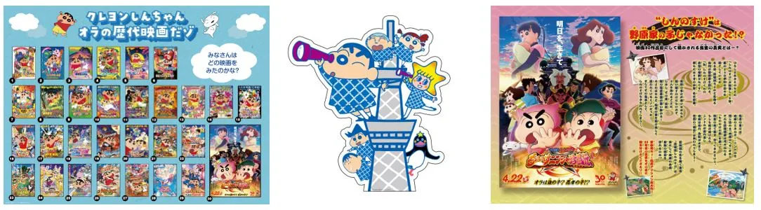 東京ソラマチ会場では上記に加えて、歴代映画作品のポスター展示や『映画クレヨンしんちゃん もののけニンジャ珍風伝』の紹介パネル、フォトスポットパネルの設置を行います。