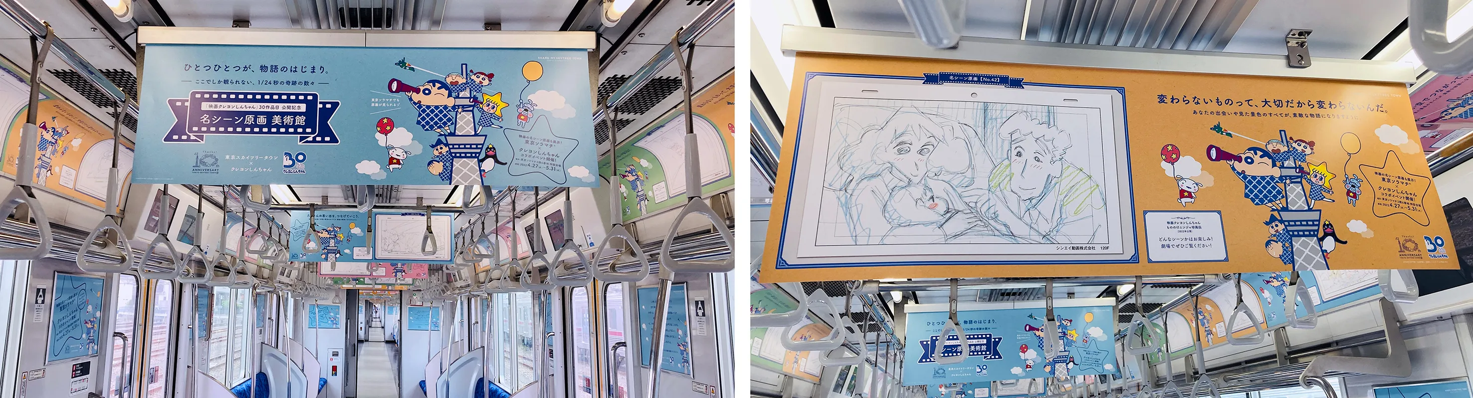 『映画クレヨンしんちゃん30作品記念企画』×『東京スカイツリータウン開業10周年企画』の一環として、「映画クレヨンしんちゃん」作品の原画による車両ジャックを東武スカイツリーラインと東武東上線で実施します(一部の編成など)。