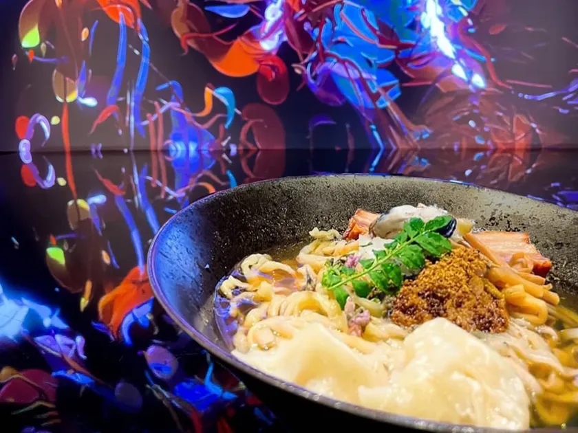 大阪初!五感で楽しむラーメン店「ネクストシカク」 完全キャッシュレス対応でコロナ対策を実施 ~アートな空間で非日常が体験できる牡蠣ラーメン専門店~