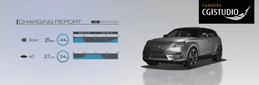 ルネサス エレクトロニクス社の実機「R-Car M3」に「CGI Studio」を実装したHMIソリューションは、先進的なデザインで、バッテリー残量をはじめ、モードステータスやナビゲーションモード、そして充電スポット検索などのさまざまなシーンが含まれています。自動車HMIの未来を創造し、持続可能な社会の実現を目指すカンデラの注目ソリューションです。