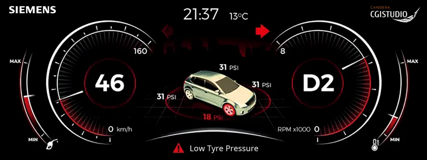 シーメンスEDA社のNucleus® RTOS(リアルタイムオペレーティングシステム)を使用したソリューションは、自動車認証に不可欠な機能安全規格(ISO 26262)を満たしながら、インストルメントクラスターのディスプレイ管理を行います。これにより、走行中の安全に関する情報とそれ以外の情報を分離させ、安全に関する情報を最優先で表示させることができます。1台のディスプレイに、クリティカルとノンクリティカルなHMIアプリケーションを混在させて表示させることは、従来困難とされてきましたが、「CGI Studio」と組み合わせることで可能になりました。