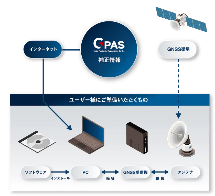 ※1 ユーザー様でご用意いただくか、GPAS測位ソフトウェア(GSOK)のご利用も可能です(有償)。