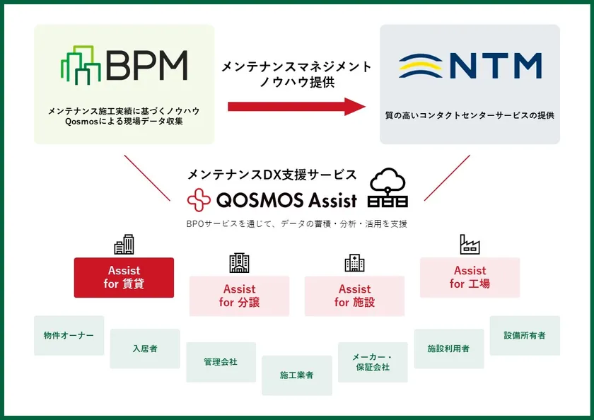 コンタクトセンター・フルフィルメントセンターを運営する日本トータルテレマーケティング株式会社(本社:東京都渋谷区、代表取締役社長:森 真吾、以下「当社」)は、建物・設備の維持管理を担う“メンテナンス業界”のDXを支援するBPM株式会社(本社:東京都千代田区、代表取締役:桐原 康輔、以下「BPM」)との共同運営を開始しました。今後両社は、建物・設備メンテナンス業における施工履歴データの蓄積・分析・活用を支援する、業界特化型のDX支援サービスを提供してまいります。