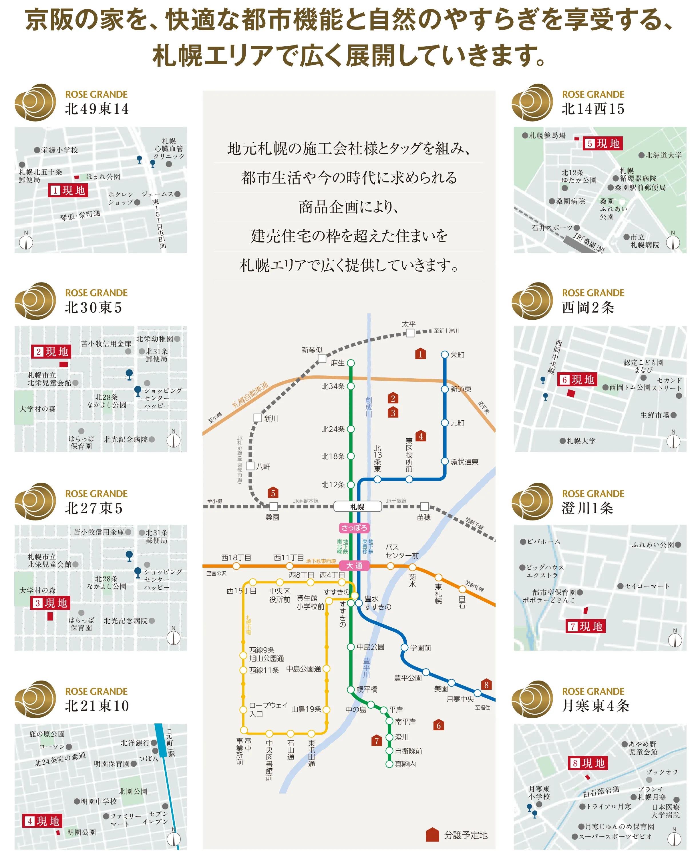 そして、国内初の官民一体型ニュータウン「くずはローズタウン」(大阪府枚方市)に代表される大規模開発事業から、更新期を迎えた市街地で都市型住宅を再生する「まちなかホーム」事業まで、幅広く手掛けてきた戸建分譲プロジェクトが、2022年、札幌でデビューいたします。