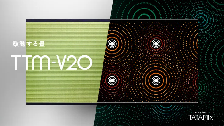 『TTM-V20』は 、振動スピーカーを畳の内部に6機搭載し、畳に「ごろ寝」することで音と振動を全身で感じることができる「鼓動する畳」です。