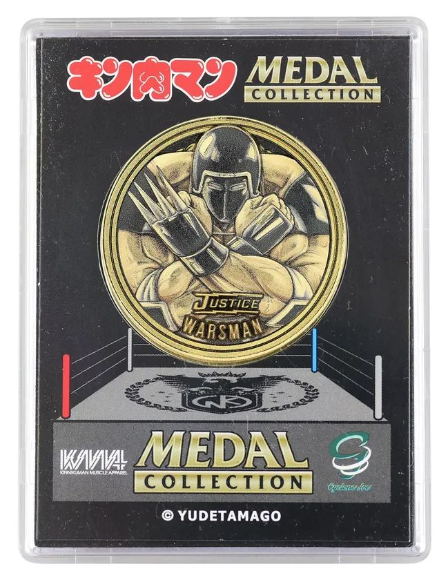 そして今回はキン肉王家とロビン王朝にテーマを絞り、既存のメダル品種にキン肉マン スグル戦闘服 2.0、ロビンマスク、ウォーズマン 1.0、ケビンマスク、キン肉マングレートテーマにした豪華仕様のレアメダル『プラチナメダル』をシークレット扱いで封入!