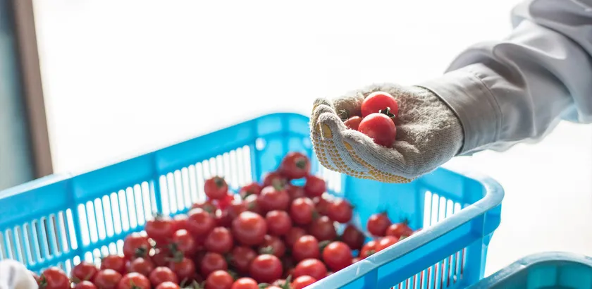 スイートルビーを栽培しているハウスは、耐候性ハウス高度環境制御システムにより年間を通じて育成管理されています。また、ミニトマトは中玉種で糖度の高い品種「フルティカ種」を養液栽培と特殊なフィルムを使って行う「アイメック農法」で栽培します。甘くて、美味しいを追及するために栽培方法にこだわりました。
