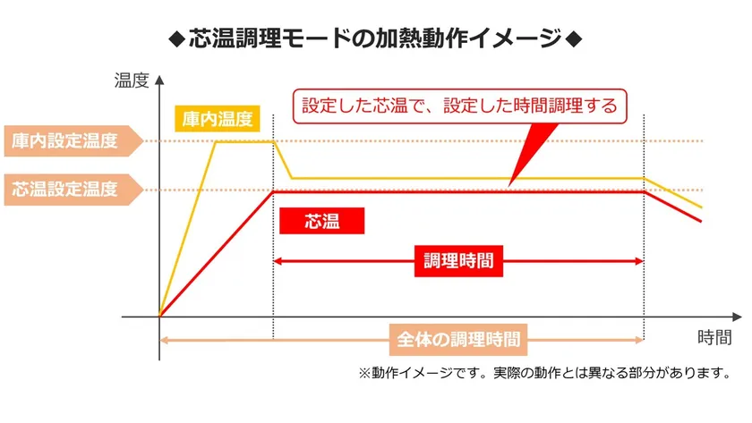 中心温度は1℃単位(40~85℃の間)で、設定した中心温度に到達してから加熱したい時間を1分単位(最長12時間まで)設定が可能です。